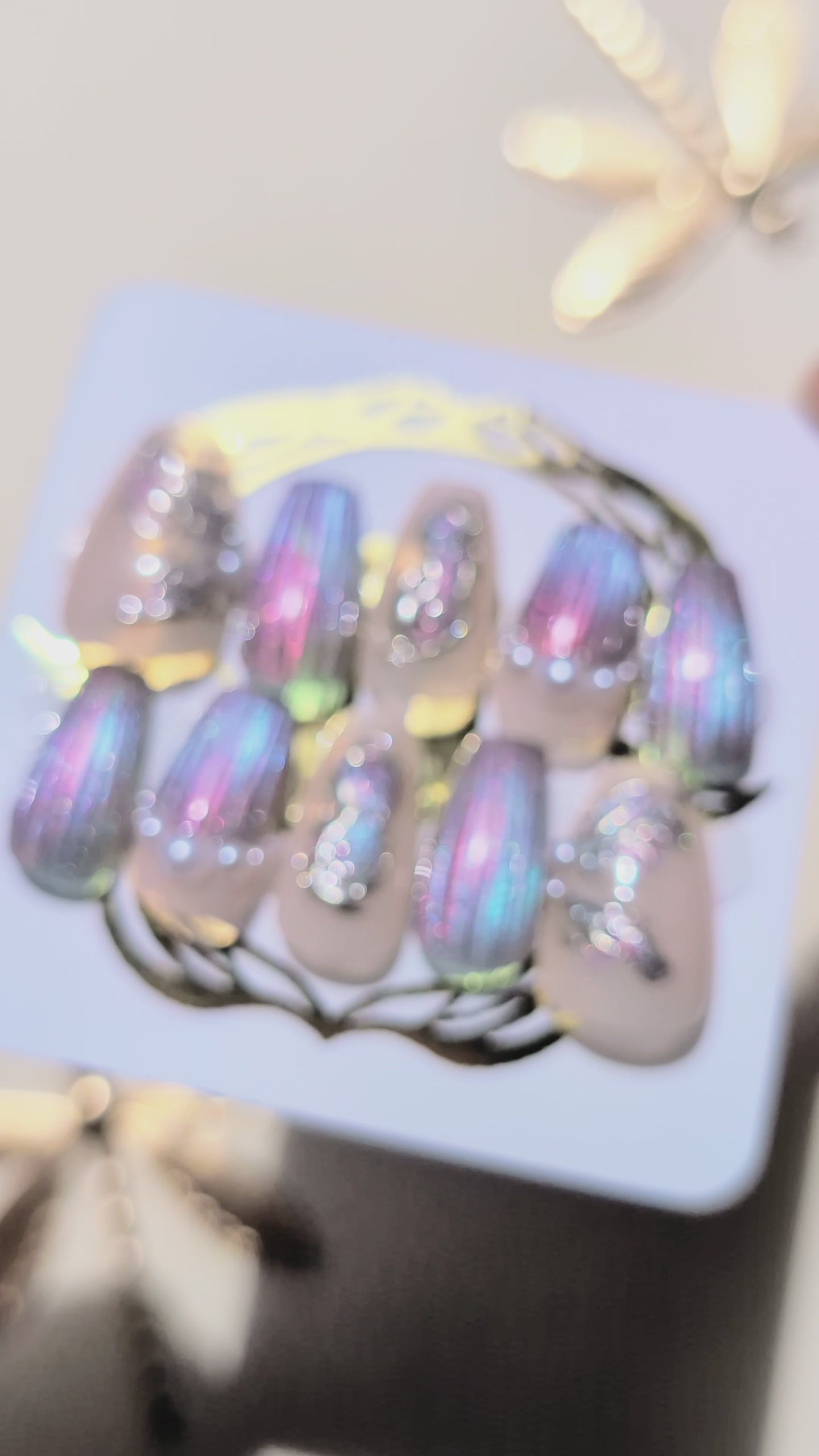 (Les ongles que vous recevrez dans votre commande ne seront pas totalement identiques à ceux présentés sur les photos, tous étant fabriqués à la main, il peut y avoir des variations légères.)